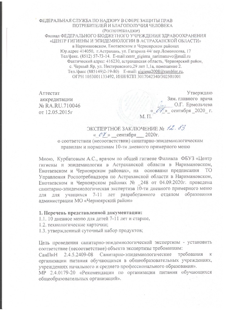 Перспективное 10 дневное меню и пищевая ценность приготовляемых блюд для питания горячим завтраком учащихся 1-4 классов в МБОУ "СОШ с.Вязовка" от 01.03.2021 г.