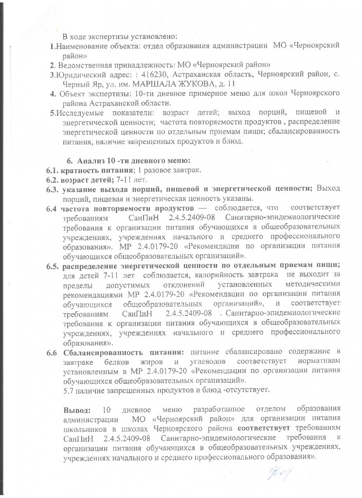 Приказ "О замене блюд в меню" от 02.03.2021